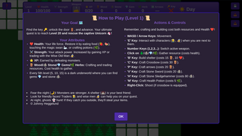 Adventure RPG - Retro Survival & Crafting is an immersive, browser-based open-world experience that blends retro-inspired aesthetics with complex survival and resource management mechanics. Players navigate an expansive, dynamically generated world including dangerous underworld biomes and shifting day-night cycles to gather resources, craft legendary weaponry, and build strategic shelters. Featuring a progressive leveling system, engaging NPC interactions, and a variety of hostile entities culminating in a high-stakes final quest to rescue a captive unicorn, the game offers a polished and challenging adventure for fans of classic RPG exploration and modern crafting systems.