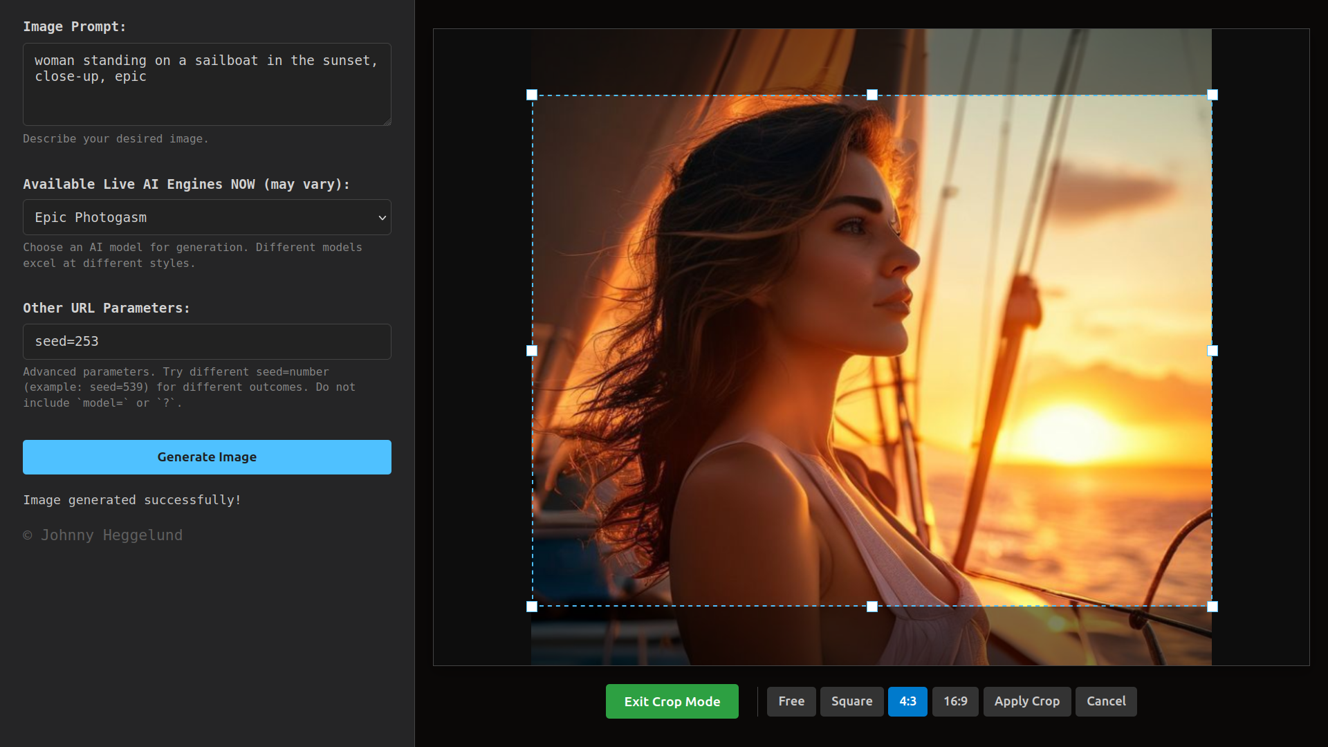 Unleash your creativity with this dedicated AI Image Generator. Simply enter a descriptive prompt for your desired image, choose from a variety of powerful AI models to influence the style, and fine-tune your output with advanced parameters like Width, Height, or Seed. Experiment with different settings and models to achieve unique and stunning results. After generation, effortlessly download your creation or use the versatile crop tool to perfect its composition.