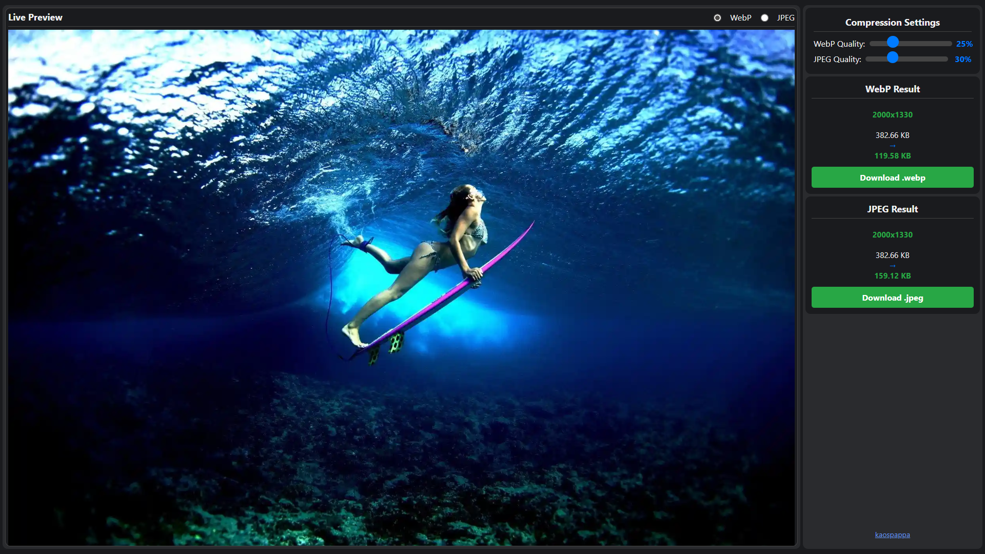 Image Compressor: WebP & JPEG Quality Control, Live Preview